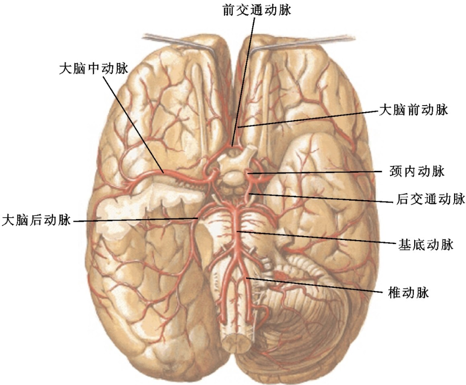 腦的動(dòng)脈供應(yīng)來(lái)源于頸內(nèi)動(dòng)脈和椎動(dòng)脈