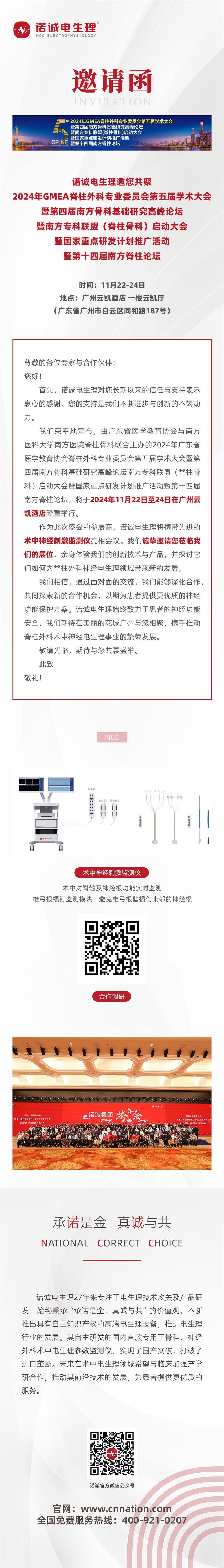 【邀請函】諾誠電生理邀您共聚2024年GMEA脊柱外科專業委員會第五屆學術大會暨第四屆南方骨科基礎研究高峰論壇暨南方專科聯盟(脊柱骨科)啟動大會暨國家重點研發計劃推廣活動暨第十四屆南方脊柱論壇