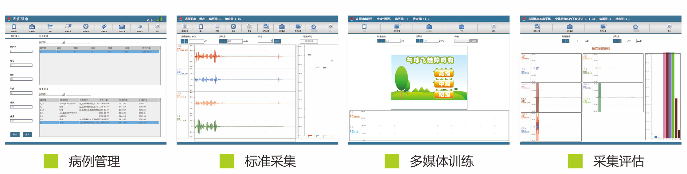 ● 可進行放松、加強、協調性、準確性和抗疲勞等多種肌電生物反饋多媒體游戲訓練。