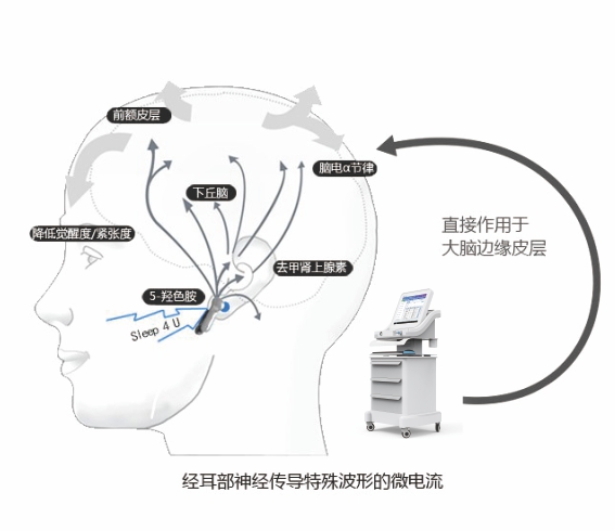 經(jīng)顱微電流刺激療法(Cranial electrotherapy stimulation, 簡稱CES),通過耳垂根部的耳夾電極產生低強度微電流刺激大腦,改善異常腦電波,調節(jié)大腦神經(jīng)遞質和應激激素的分泌,從而達到治療的目的。